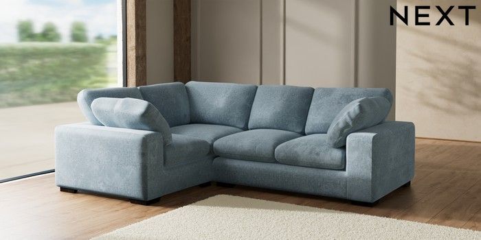 7.2.10 N Premium The Snuggle Grand Medium Corner Sofa - Left Hand Plush Chenille Light Blue Large Square Angle - Dark | Made Click here to use our website with more accessibility support, for example screen readers