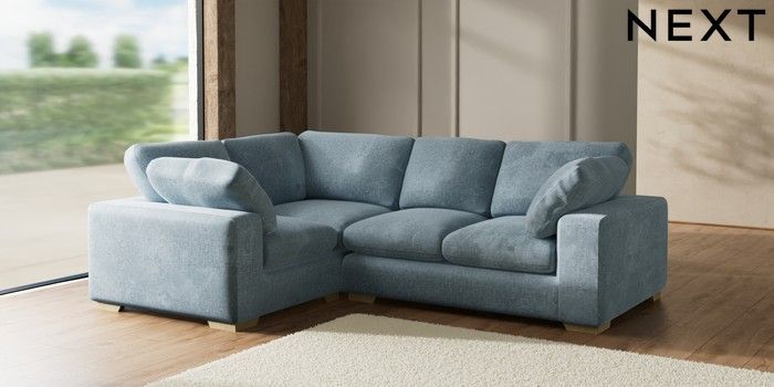 7.2.10 N Premium The Snuggle Grand Medium Corner Sofa - Left Hand Plush Chenille Light Blue Large Square Angle - Light | Made Click here to use our website with more accessibility support, for example screen readers