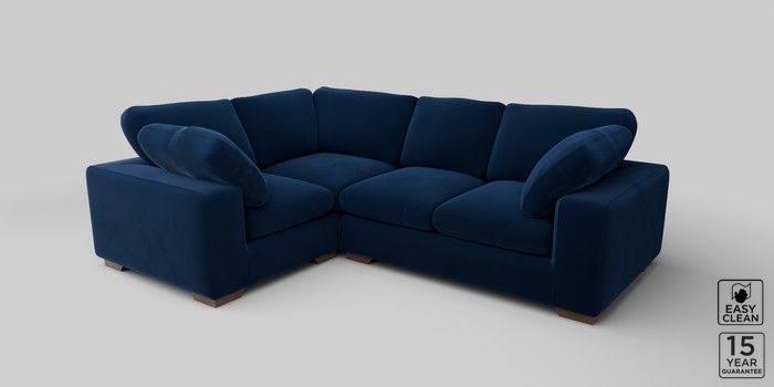7.2.10 N Premium The Snuggle Grand Medium Corner Sofa - Left Hand Plush Velvet Easy Clean Navy Blue Large Square Angle - Mid | Made Click here to use our website with more accessibility support, for example screen readers