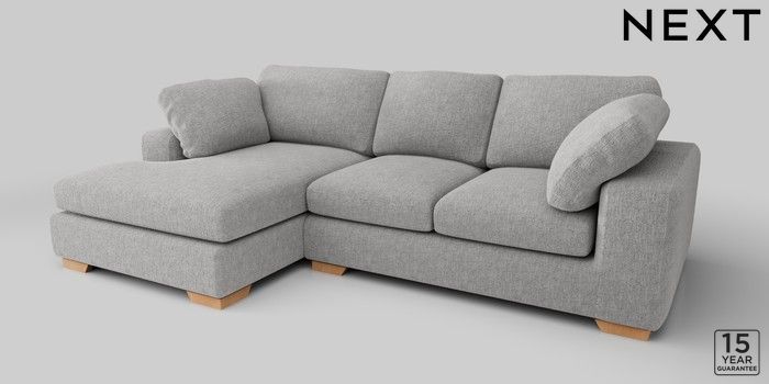 7.2.10 N Premium The Snuggle Grand Medium Sofa Chaise - Left Hand Chunky Chenille Light Grey Large Square Angle - Light | Made Click here to use our website with more accessibility support, for example screen readers