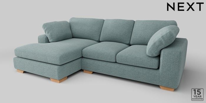 7.2.10 N Premium The Snuggle Grand Medium Sofa Chaise - Left Hand Chunky Chenille Light Teal Green Large Square Angle - Light | Made Click here to use our website with more accessibility support, for example screen readers