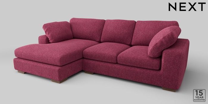 7.2.10 N Premium The Snuggle Grand Medium Sofa Chaise - Left Hand Cotswold Chenille Dark Raspberry Pink Large Square Angle - Mid | Made Click here to use our website with more accessibility support, for example screen readers