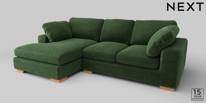 7.2.10 N Premium The Snuggle Grand Medium Sofa Chaise - Left Hand Luxe Chenille Dark Green Large Square Angle - Light | Made Click here to use our website with more accessibility support, for example screen readers