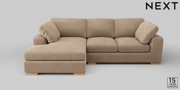 7.2.10 N Premium The Snuggle Grand Medium Sofa Chaise - Left Hand Luxe Chenille Mid Camel Beige Large Square Angle - Light | Made Click here to use our website with more accessibility support, for example screen readers