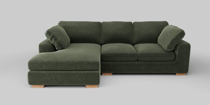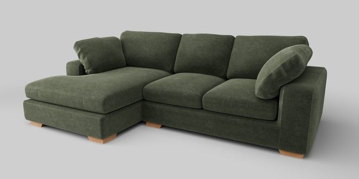 7.2.10 N Premium The Snuggle Grand Medium Sofa Chaise - Left Hand Luxe Chenille Mid Green Large Square Angle - Light | Made Click here to use our website with more accessibility support, for example screen readers