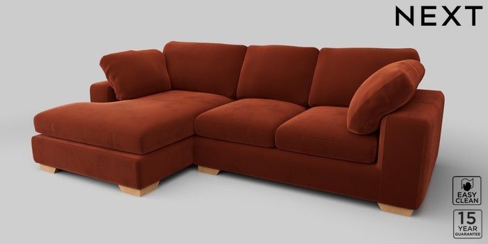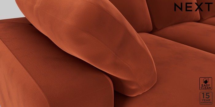 7.2.10 N Premium The Snuggle Grand Medium Sofa Chaise - Left Hand Plush Velvet Easy Clean Ginger Orange Large Square Angle - Light | Made Click here to use our website with more accessibility support, for example screen readers