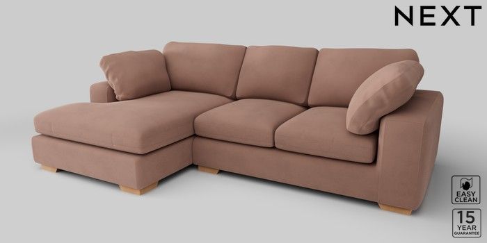 7.2.10 N Premium The Snuggle Grand Medium Sofa Chaise - Left Hand Plush Velvet Easy Clean Mid Natural Large Square Angle - Light | Made Click here to use our website with more accessibility support, for example screen readers