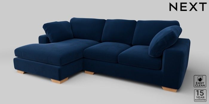 7.2.10 N Premium The Snuggle Grand Medium Sofa Chaise - Left Hand Plush Velvet Easy Clean Navy Blue Large Square Angle - Light | Made Click here to use our website with more accessibility support, for example screen readers