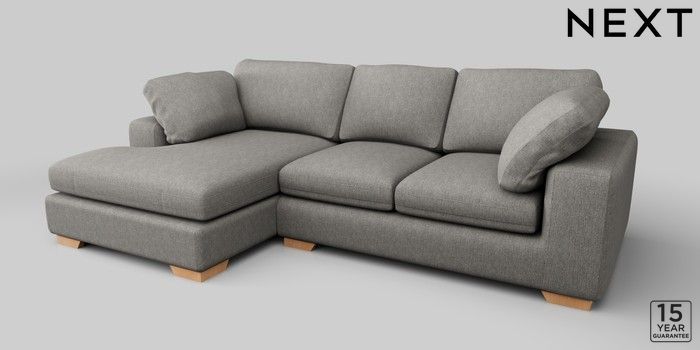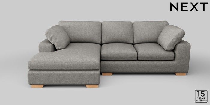 7.2.10 N Premium The Snuggle Grand Medium Sofa Chaise - Left Hand Tweedy Chenille Mid Grey Large Square Angle - Light | Made Click here to use our website with more accessibility support, for example screen readers