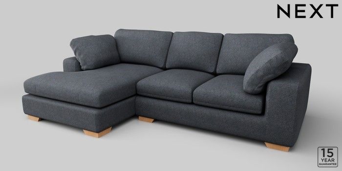 7.2.10 N Premium The Snuggle Grand Medium Sofa Chaise - Left Hand Tweedy Chenille Navy Blue Large Square Angle - Light | Made Click here to use our website with more accessibility support, for example screen readers