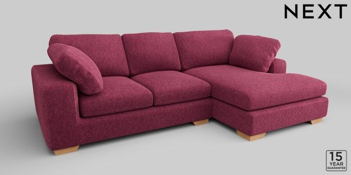 7.2.10 N Premium The Snuggle Grand Medium Sofa Chaise - Right Hand Cotswold Chenille Dark Raspberry Pink Large Square Angle - Light | Made Click here to use our website with more accessibility support, for example screen readers