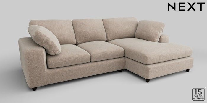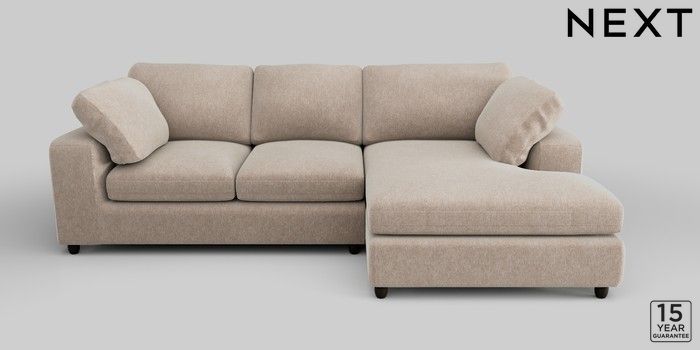 7.2.10 N Premium The Snuggle Grand Medium Sofa Chaise - Right Hand Cotswold Chenille Light Natural Wooden Glide - Dark | Made Click here to use our website with more accessibility support, for example screen readers