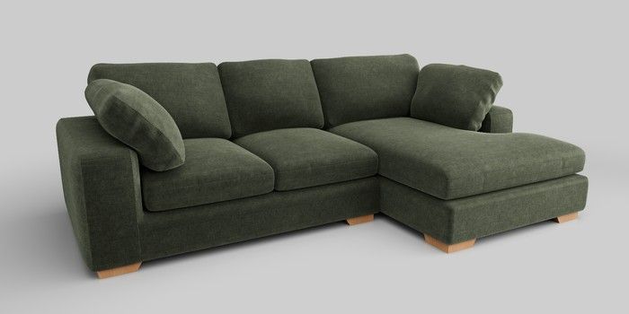 7.2.10 N Premium The Snuggle Grand Medium Sofa Chaise - Right Hand Luxe Chenille Mid Green Large Square Angle - Light | Made Click here to use our website with more accessibility support, for example screen readers