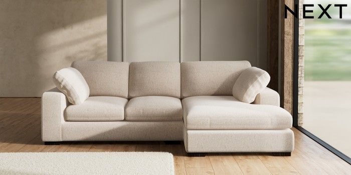 7.2.10 N Premium The Snuggle Grand Medium Sofa Chaise - Right Hand Multi Weave Mid Natural Large Square Angle - Dark | Made Click here to use our website with more accessibility support, for example screen readers