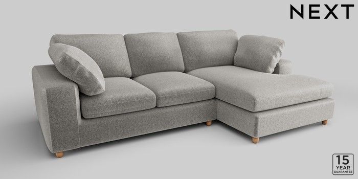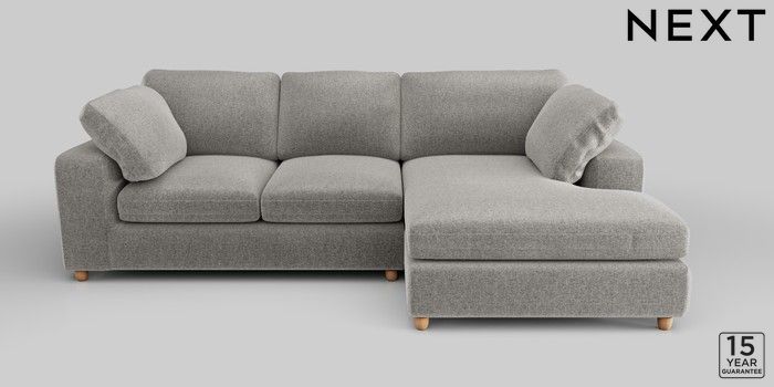 7.2.10 N Premium The Snuggle Grand Medium Sofa Chaise - Right Hand Plush Chenille Light Grey Wooden Glide - Light | Made Click here to use our website with more accessibility support, for example screen readers