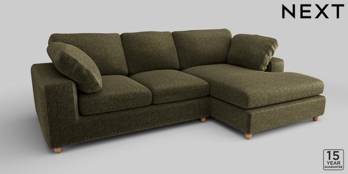 7.2.10 N Premium The Snuggle Grand Medium Sofa Chaise - Right Hand Plush Chenille Moss Green Wooden Glide - Light | Made Click here to use our website with more accessibility support, for example screen readers