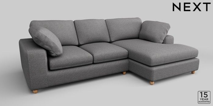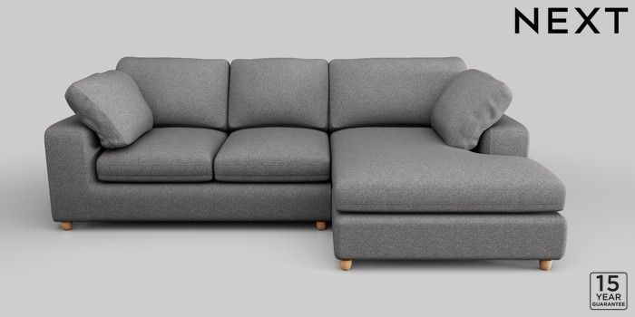7.2.10 N Premium The Snuggle Grand Medium Sofa Chaise - Right Hand Studio Chenille Mid Grey Wooden Glide - Light | Made Click here to use our website with more accessibility support, for example screen readers