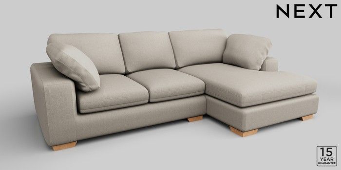 7.2.10 N Premium The Snuggle Grand Medium Sofa Chaise - Right Hand Tweedy Chenille Oyster Large Square Angle - Light | Made Click here to use our website with more accessibility support, for example screen readers