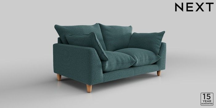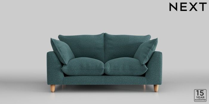 7.2.10 Noa Deep Relaxed Sit 2 Seater Small Sofa Chunky Chenille Mid Teal Green High Leg - Light | Made Click here to use our website with more accessibility support, for example screen readers