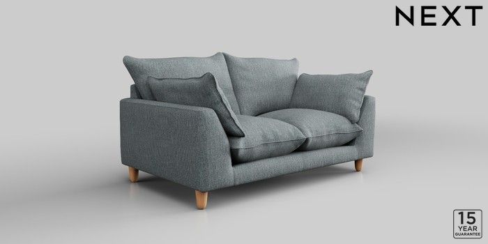 7.2.10 Noa Deep Relaxed Sit 2 Seater Small Sofa Chunky Weave Mid Blue High Leg - Light | Made Click here to use our website with more accessibility support, for example screen readers
