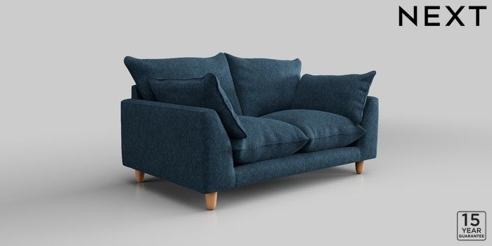 7.2.10 Noa Deep Relaxed Sit 2 Seater Small Sofa Cotswold Chenille Dark Blue High Leg - Light | Made Click here to use our website with more accessibility support, for example screen readers
