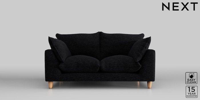 7.2.10 Noa Deep Relaxed Sit 2 Seater Small Sofa Fine Chenille Easy Clean Black High Leg - Light | Made Click here to use our website with more accessibility support, for example screen readers
