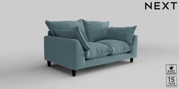 7.2.10 Noa Deep Relaxed Sit 2 Seater Small Sofa Fine Chenille Easy Clean Mid Blue High Leg - Dark | Made Click here to use our website with more accessibility support, for example screen readers