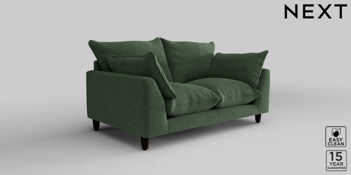 7.2.10 Noa Deep Relaxed Sit 2 Seater Small Sofa Fine Chenille Easy Clean Mid Khaki Green High Leg - Dark | Made Click here to use our website with more accessibility support, for example screen readers