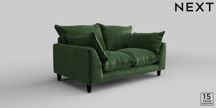 7.2.10 Noa Deep Relaxed Sit 2 Seater Small Sofa Luxe Chenille Dark Green High Leg - Dark | Made Click here to use our website with more accessibility support, for example screen readers