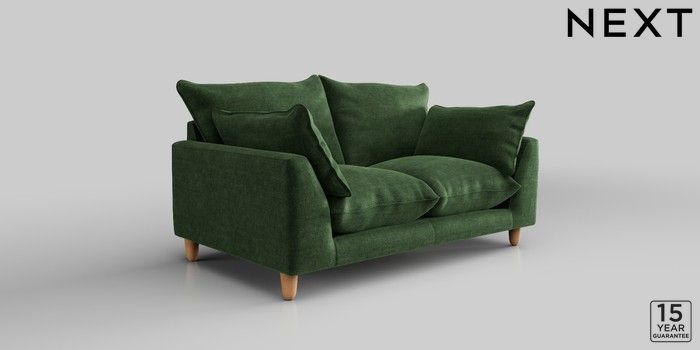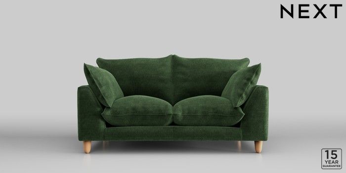 7.2.10 Noa Deep Relaxed Sit 2 Seater Small Sofa Luxe Chenille Dark Green High Leg - Light | Made Click here to use our website with more accessibility support, for example screen readers
