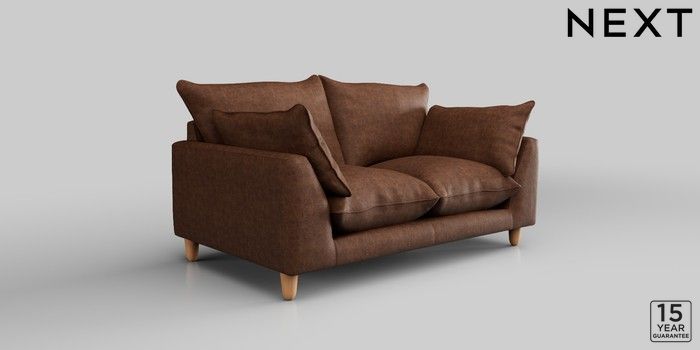 7.2.10 Noa Deep Relaxed Sit 2 Seater Small Sofa Monza Faux Leather Easy Clean Chestnut Brown High Leg - Light | Made Click here to use our website with more accessibility support, for example screen readers