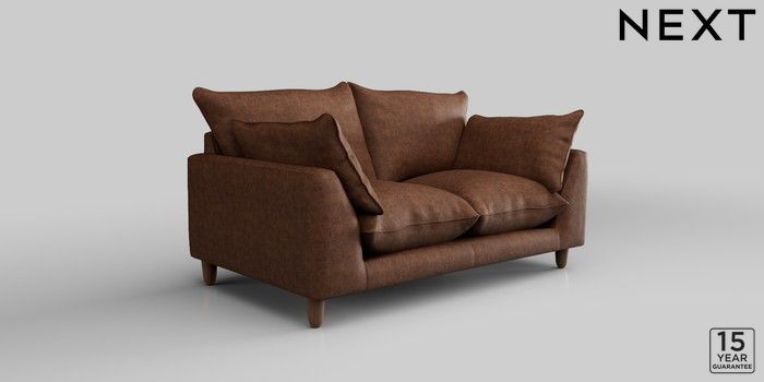 7.2.10 Noa Deep Relaxed Sit 2 Seater Small Sofa Monza Faux Leather Easy Clean Chestnut Brown High Leg - Mid | Made Click here to use our website with more accessibility support, for example screen readers