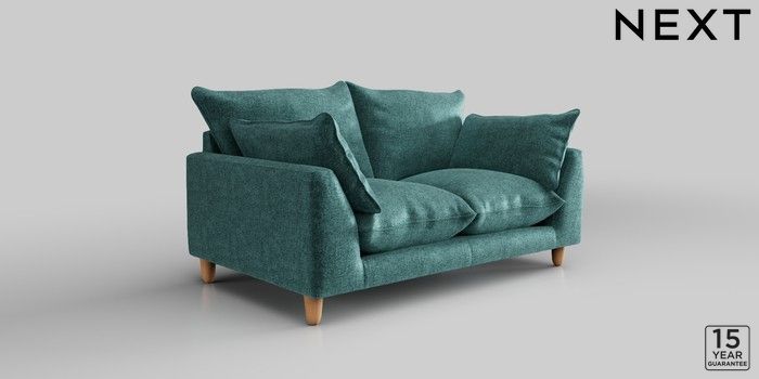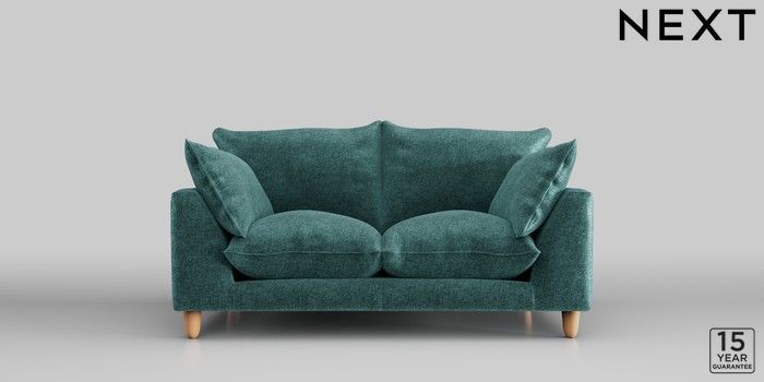 7.2.10 Noa Deep Relaxed Sit 2 Seater Small Sofa Plush Chenille Dark Teal Green High Leg - Light | Made Click here to use our website with more accessibility support, for example screen readers