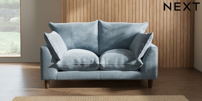7.2.10 Noa Deep Relaxed Sit 2 Seater Small Sofa Plush Chenille Light Blue High Leg - Mid | Made Click here to use our website with more accessibility support, for example screen readers