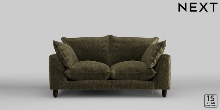 7.2.10 Noa Deep Relaxed Sit 2 Seater Small Sofa Plush Chenille Moss Green High Leg - Dark | Made Click here to use our website with more accessibility support, for example screen readers