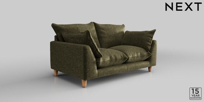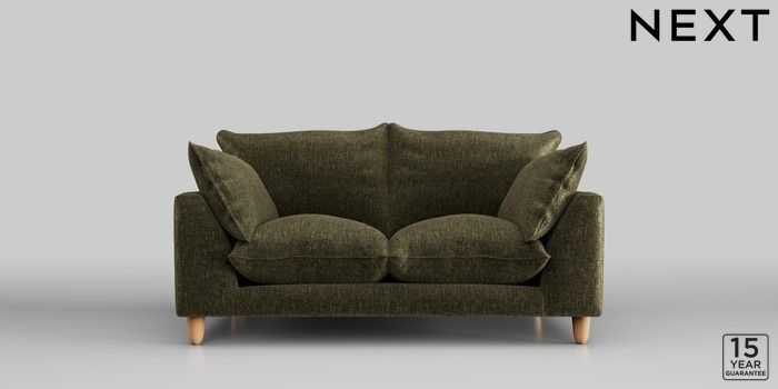 7.2.10 Noa Deep Relaxed Sit 2 Seater Small Sofa Plush Chenille Moss Green High Leg - Light | Made Click here to use our website with more accessibility support, for example screen readers