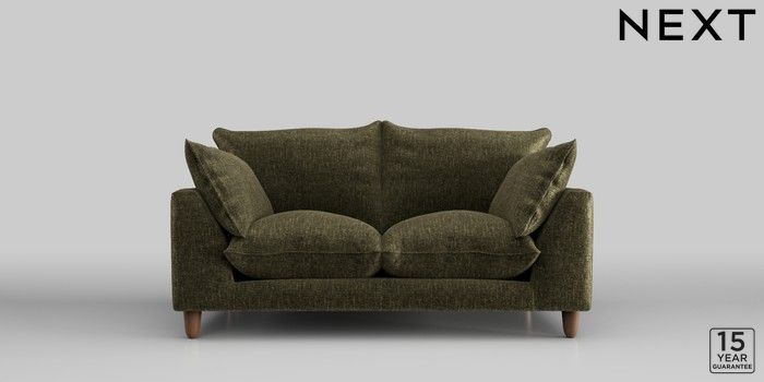 7.2.10 Noa Deep Relaxed Sit 2 Seater Small Sofa Plush Chenille Moss Green High Leg - Mid | Made Click here to use our website with more accessibility support, for example screen readers