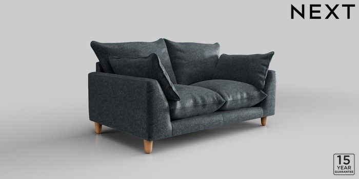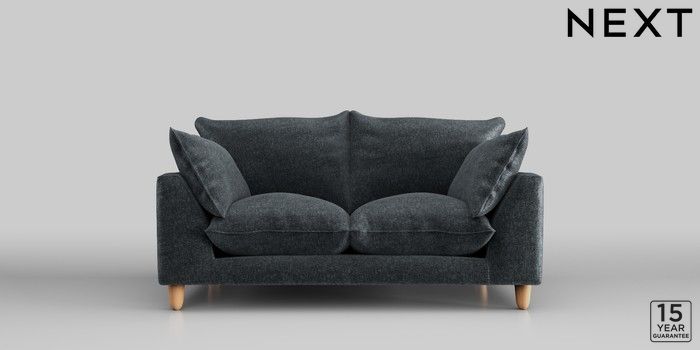 7.2.10 Noa Deep Relaxed Sit 2 Seater Small Sofa Plush Chenille Slate Blue High Leg - Light | Made Click here to use our website with more accessibility support, for example screen readers