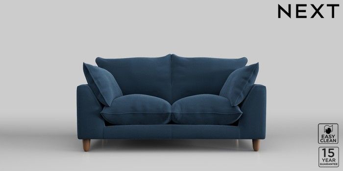 7.2.10 Noa Deep Relaxed Sit 2 Seater Small Sofa Plush Velvet Easy Clean Airforce Blue High Leg - Mid | Made Click here to use our website with more accessibility support, for example screen readers