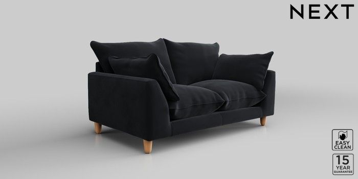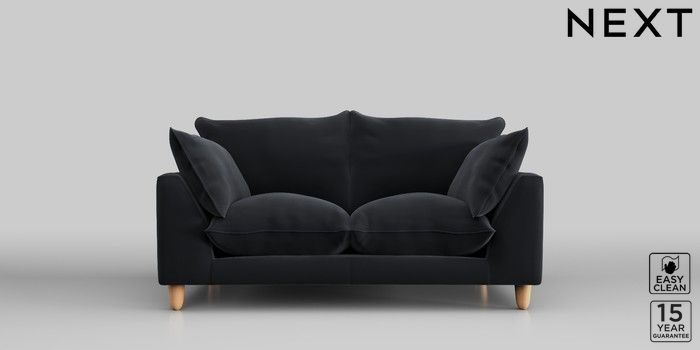7.2.10 Noa Deep Relaxed Sit 2 Seater Small Sofa Plush Velvet Easy Clean Charcoal Grey High Leg - Light | Made Click here to use our website with more accessibility support, for example screen readers