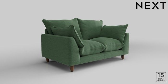 7.2.10 Noa Deep Relaxed Sit 2 Seater Small Sofa Relaxed Linen Look Dark Green High Leg - Mid | Made Click here to use our website with more accessibility support, for example screen readers