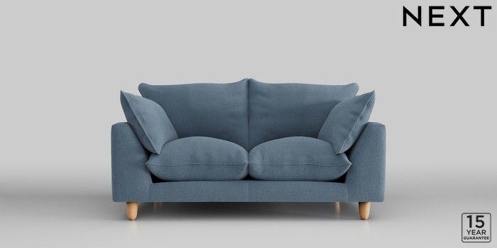 7.2.10 Noa Deep Relaxed Sit 2 Seater Small Sofa Relaxed Linen Look Mid Blue High Leg - Light | Made Click here to use our website with more accessibility support, for example screen readers