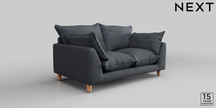 7.2.10 Noa Deep Relaxed Sit 2 Seater Small Sofa Tweedy Chenille Navy Blue High Leg - Light | Made Click here to use our website with more accessibility support, for example screen readers