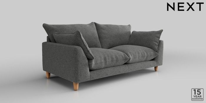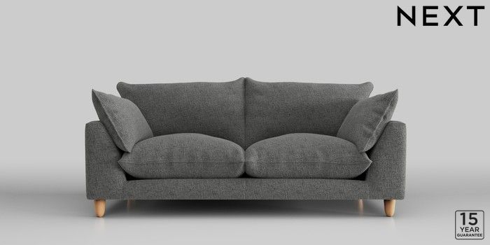 7.2.10 Noa Deep Relaxed Sit 3 Seater Small Sofa Chunky Chenille Dark Grey High Leg - Light | Made Click here to use our website with more accessibility support, for example screen readers