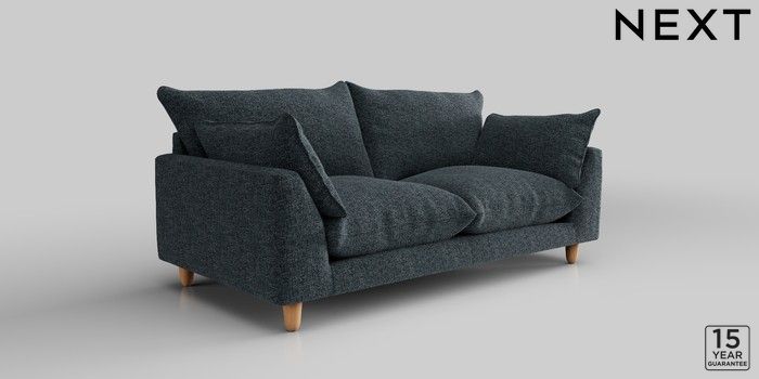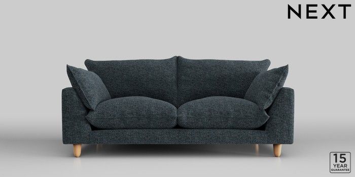 7.2.10 Noa Deep Relaxed Sit 3 Seater Small Sofa Chunky Chenille Dark Navy Blue High Leg - Light | Made Click here to use our website with more accessibility support, for example screen readers