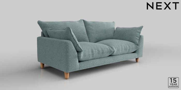 7.2.10 Noa Deep Relaxed Sit 3 Seater Small Sofa Chunky Chenille Light Teal Green High Leg - Light | Made Click here to use our website with more accessibility support, for example screen readers