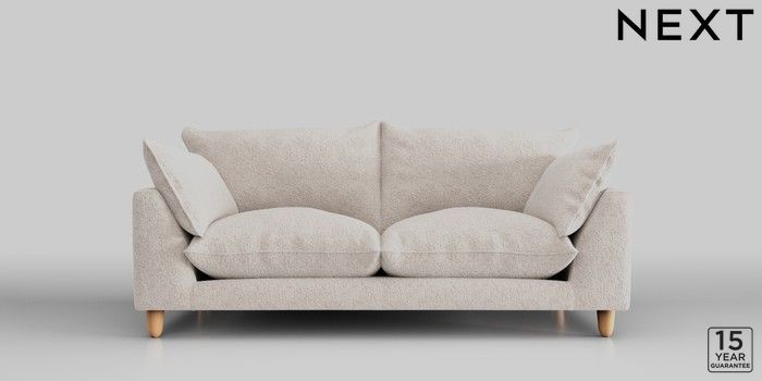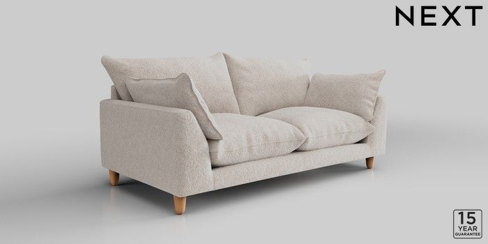 7.2.10 Noa Deep Relaxed Sit 3 Seater Small Sofa Chunky Chenille Oyster High Leg - Light | Made Click here to use our website with more accessibility support, for example screen readers