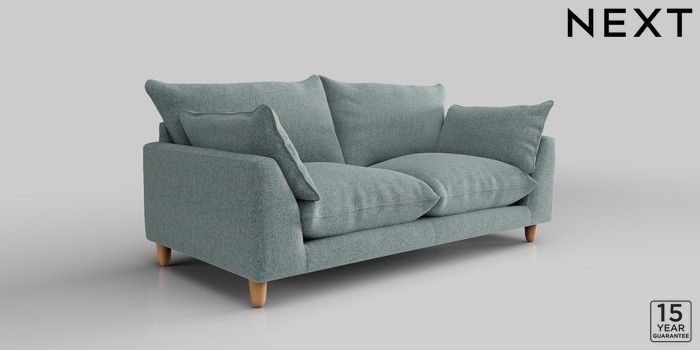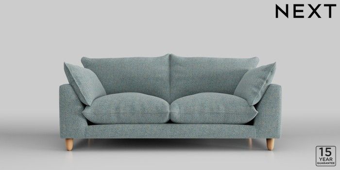 7.2.10 Noa Deep Relaxed Sit 3 Seater Small Sofa Chunky Marl Mid Blue High Leg - Light | Made Click here to use our website with more accessibility support, for example screen readers