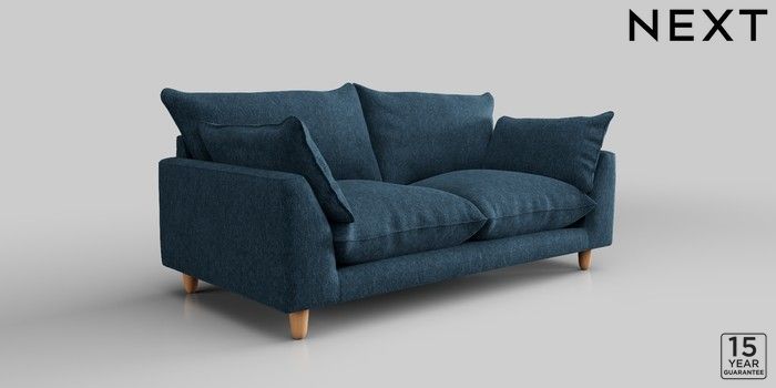 7.2.10 Noa Deep Relaxed Sit 3 Seater Small Sofa Cotswold Chenille Dark Blue High Leg - Light | Made Click here to use our website with more accessibility support, for example screen readers