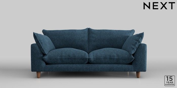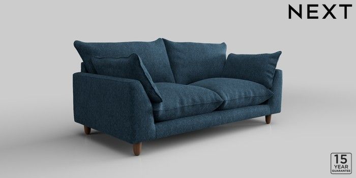 7.2.10 Noa Deep Relaxed Sit 3 Seater Small Sofa Cotswold Chenille Dark Blue High Leg - Mid | Made Click here to use our website with more accessibility support, for example screen readers